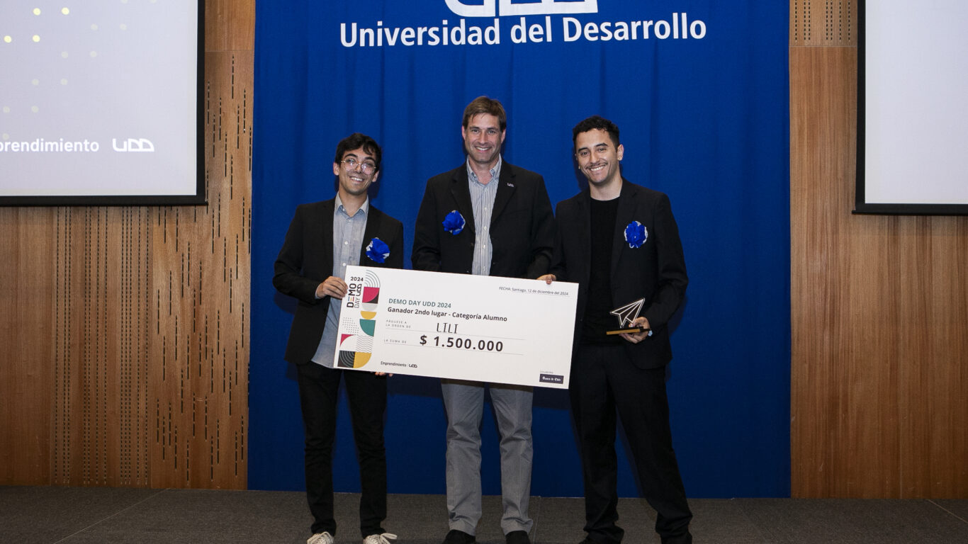 Ganadores de la Gala de Emprendimiento UDD 2024, destacando la innovación y el impacto social de LiLi en el ecosistema emprendedor chileno